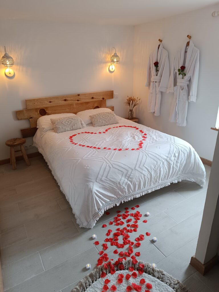 Surprenez votre partenaire avec une ambiance romantique parsemée de pétales de roses dès l’entrée jusqu’à la chambre, et laissez la lueur douce des bougies illuminer votre soirée.